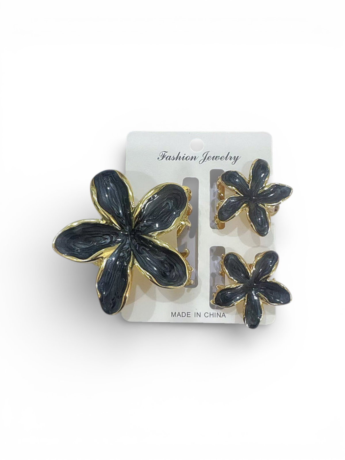 BROCHE DE PELO DE METAL FLOR EFECTO MARMOL X SET
