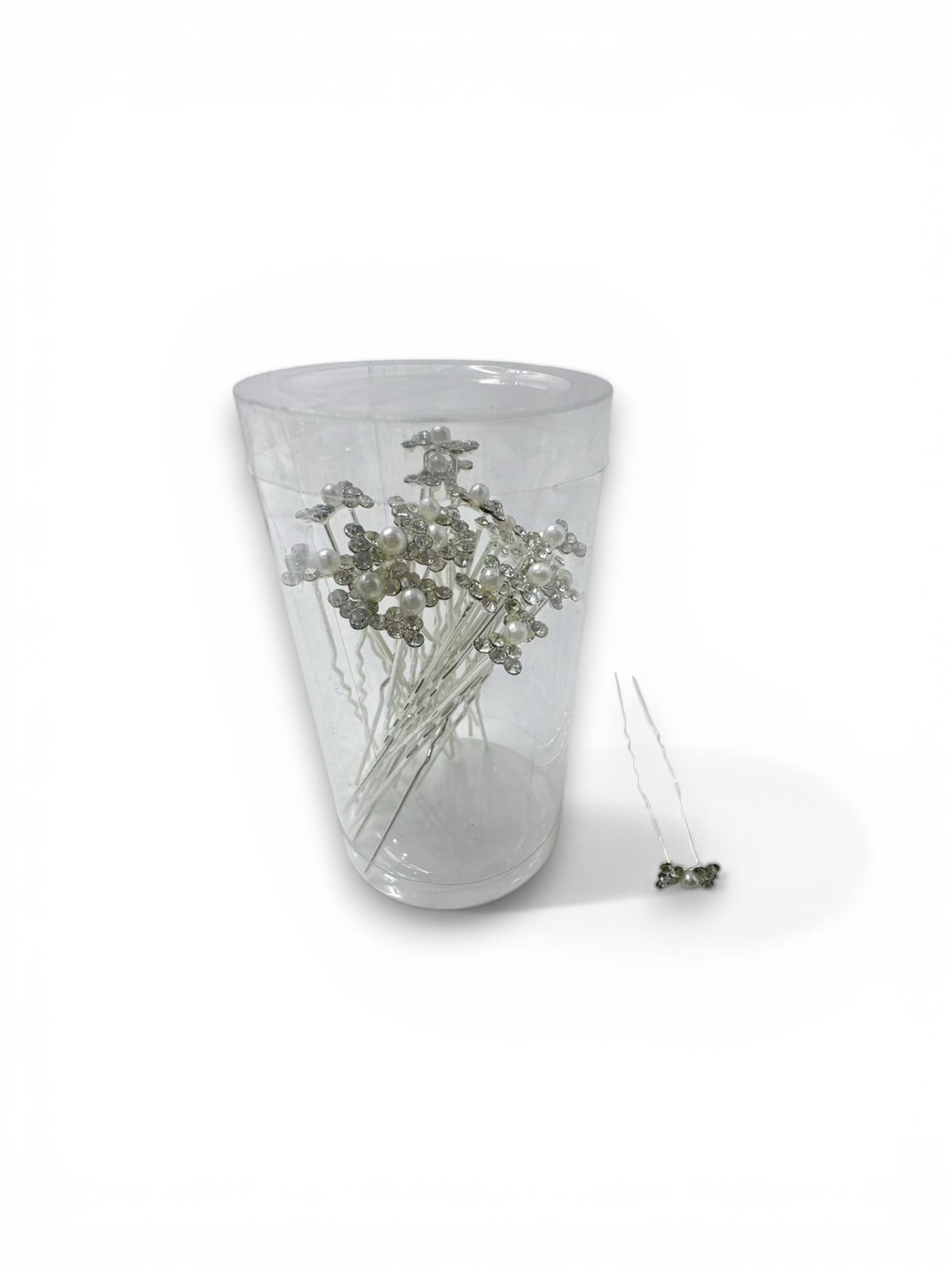 HORQUILLAS MOÑO CON PERLA Y STRASS X 20 X TUBO